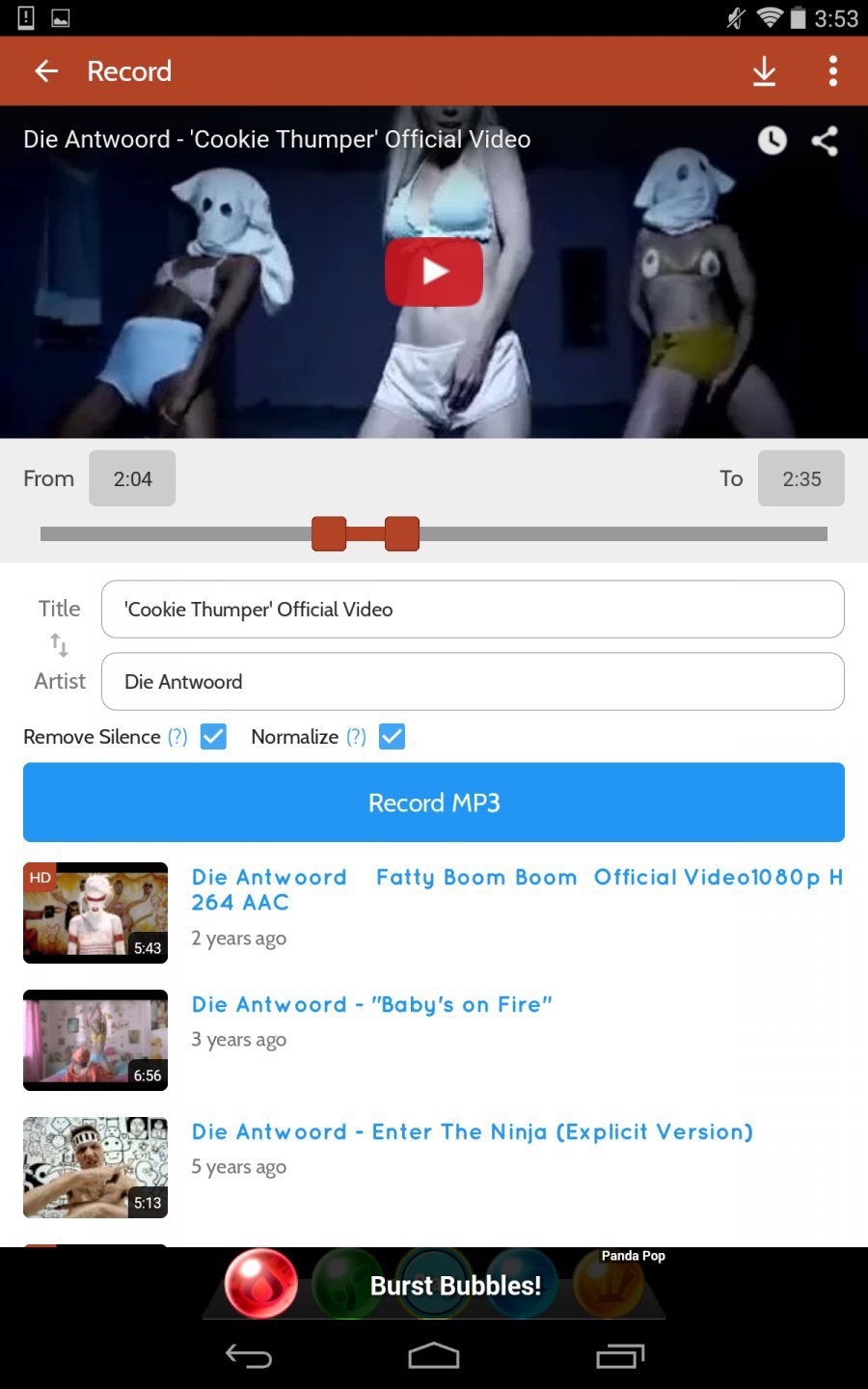 When you record a video in mp3, this app has the ability to get all the metadata of the video. Youtube recorder as an android app just copy the youtube or soundcloud url into the peggo search box or search directly for a post. If you want to download audio, choose the option record audio and click on the blue button labeled record mp3.